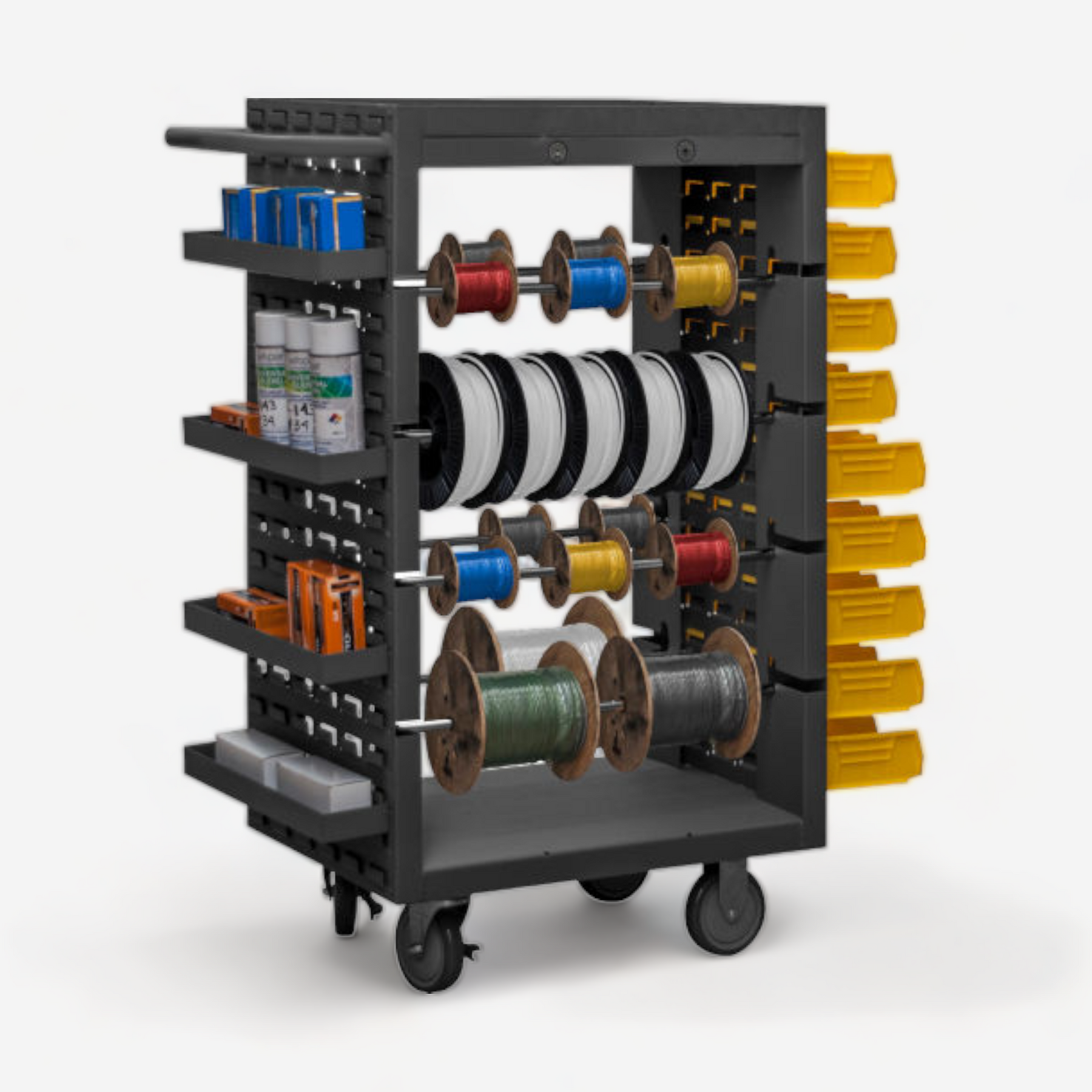 (8) 23" removable rods accommodate wire spools
